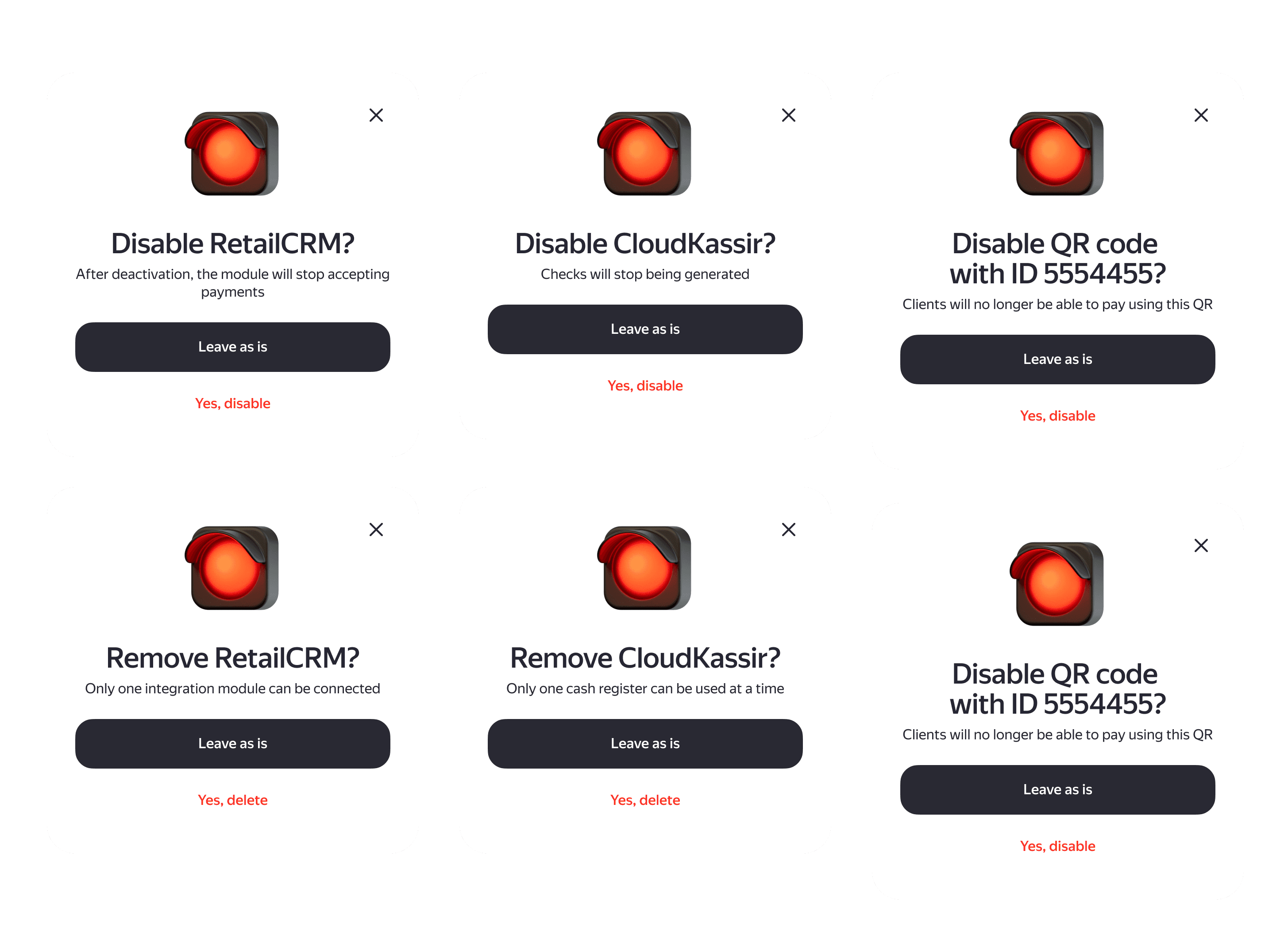 Clear confirmations: replaced vague prompts like “Are you sure?” with specific, calm questions like “Delete service X?”